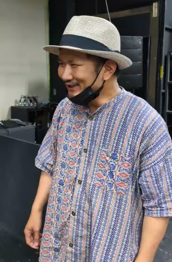 稽古では、太田カツキがおしゃれな帽子をかぶっていました。