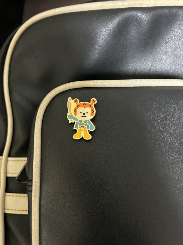 バラシの後、打ち上げ的な飲み会にも参加しました。私の席の隣が音響のYさんで、「そのピンバッチ、かわいいですね」と、私がカバンに付けたピンバッチに気づきました。